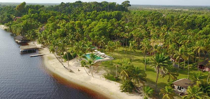 Vue aeriénne de l'hôtel, 14 chambres dans un écrin de verdure de 2ha.